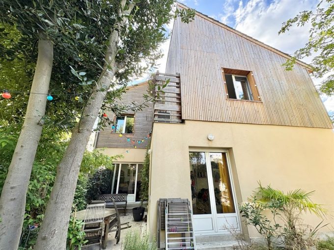 Au calme absolu d’une petite rue pavillonnaire, très lumineuse maison…